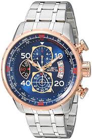Invicta Men 39 S 17203 Aviator Stainless Steel And 18k Rose Gold Ion Plated Watch Saatler