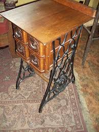 Very Interesting Table Made From Antique Sewing Machine Great End Table Antique Sewing Machines Sewing Machine Drawers Old Sewing Machines