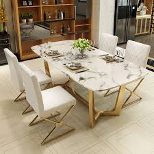 Modern Elegant Dining Table With Faux Marble Top Metal Legs Single Piece Rectangular Kitchen Table Small Medium Large In Gold Dining Table Marble Marble Top Dining Table Dining Table Decor