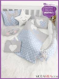Modastra Mavi Renk Bulut Ve Yildiz Kombinli Besik Kenar Koruma Ve Nevresim Seti Ev Dekoru Nevresim Takimlari Nevresim
