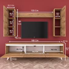 Rani D1 Duvar Rafli Kitaplikli Tv Unitesi Duvara Monte Dolapli Ahsap Ayakli Tv Sehpasi Ceviz Beyaz M37 Tv Unitesi Mobilya Tv