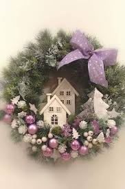 The Chic Technique Christmas Wreath In Lavender With Little White Houses And Christmas Wreaths Diy Christmas Candle Decorations Christmas Candle Centerpiece