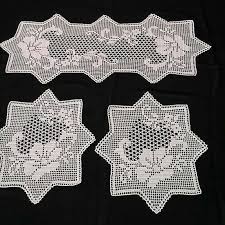 3lu Yatak Odasi Veya Sehpa Takimi Olarak Kullanilabilecek Bir Ornek Sizlerle Spars Alinir Crochet Table Runner Pattern Crochet Rose Crochet Doily Patterns